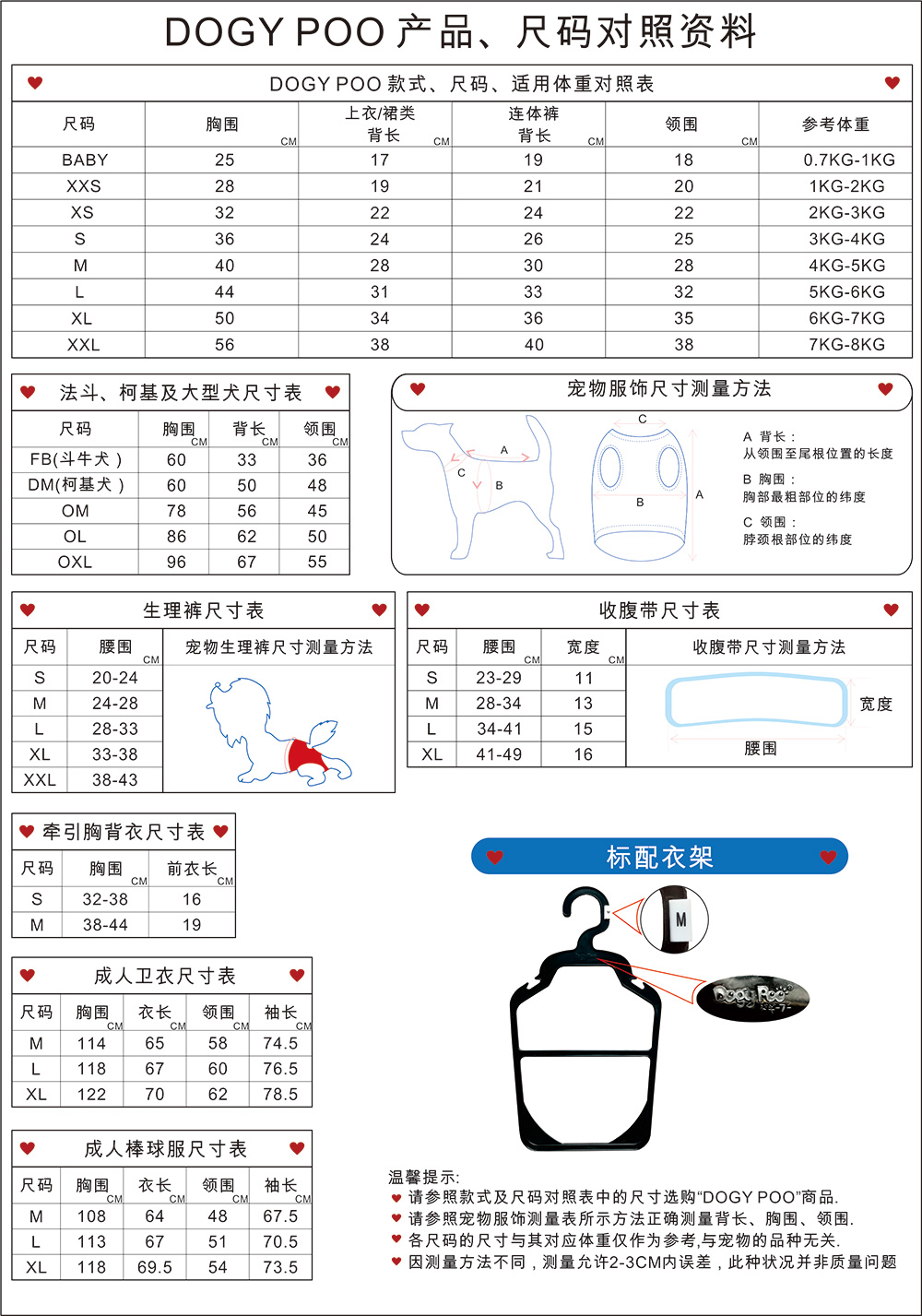 DOGY POO產(chǎn)品、尺碼對照資料